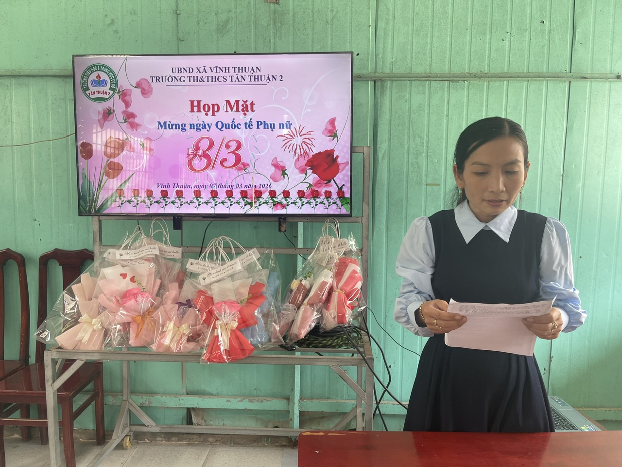 Hưởng ứng ngày tôn vinh Phụ Nữ Việt Nam của đất nước, Sáng ngày 07/3/2026, Trường TH&THCS Tân Thuận 2, tổ chức buổi tọa đàm ôn lại ý nghĩa lịch sử ngày 08/3. Đến dự có Thầy Nguyễn Văn Chương Bí thư chi bô, Hiệu trưởng nhà trường, Thầy Lâm Mộng Linh Phó hiệu trưởng cùng tập thể các Cô giáo trong đơn vị